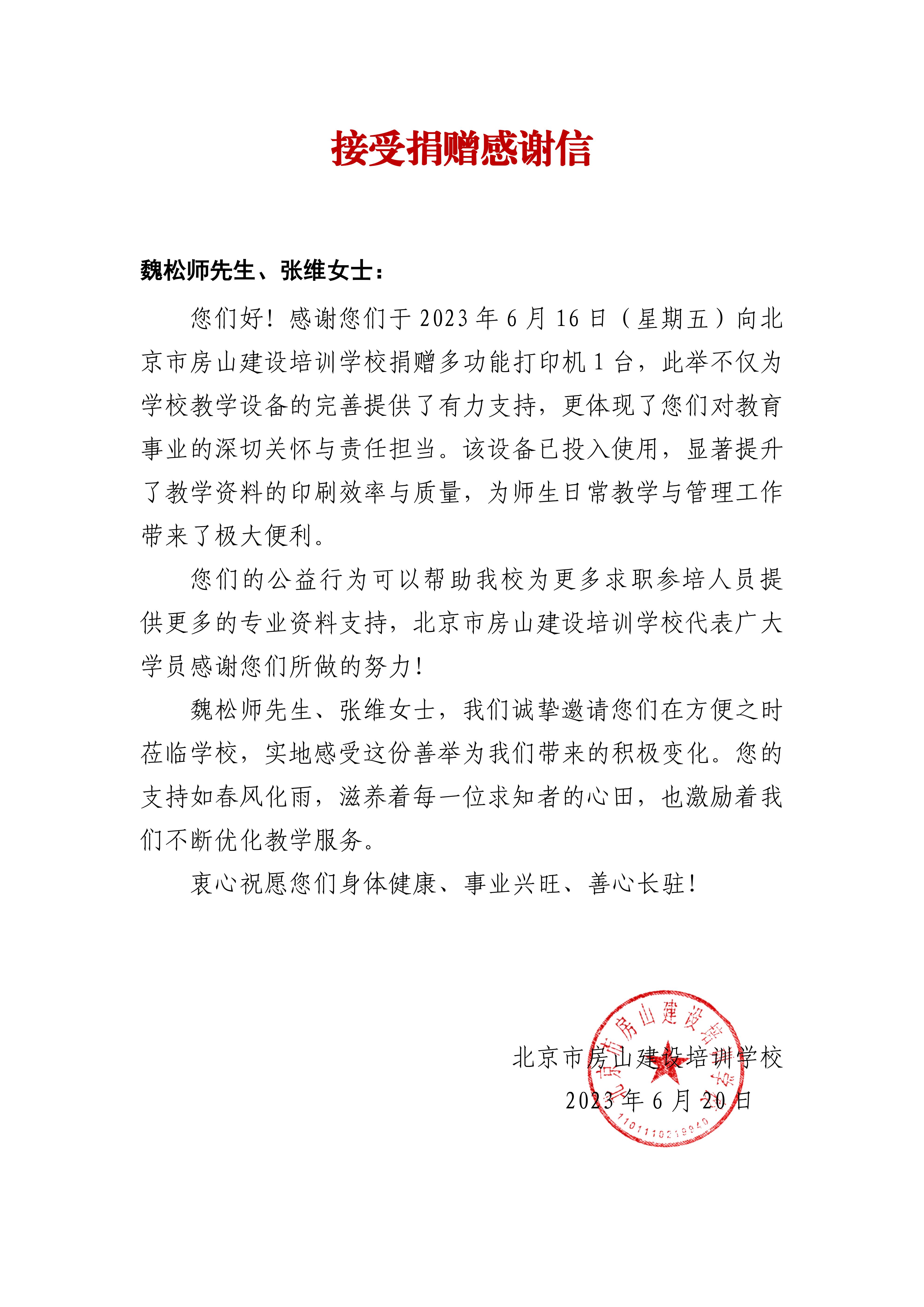 接受社会捐赠感谢信!